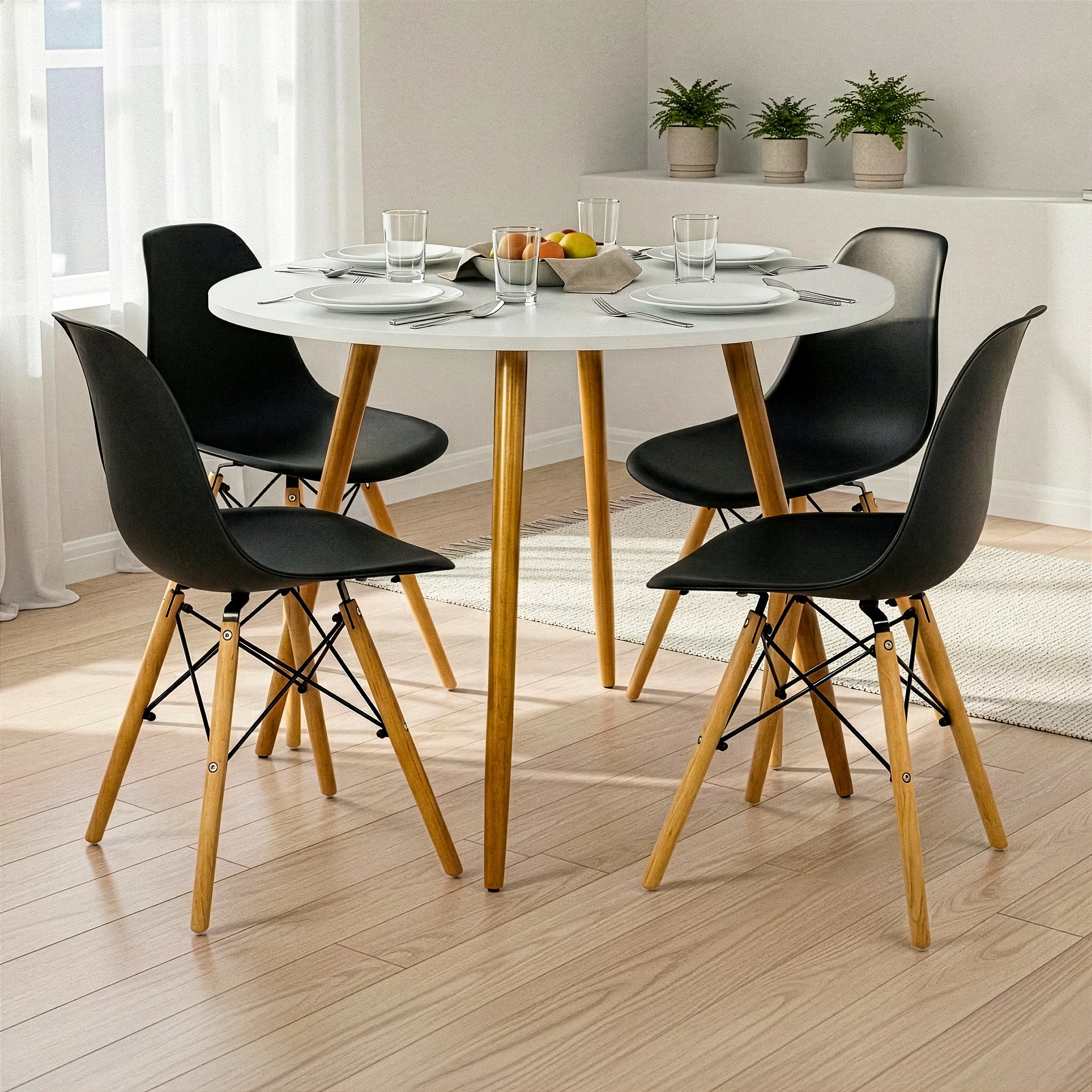 Mesa de Jantar Redonda Sofia 100cm Branca com 4 Cadeiras Eames Pretas