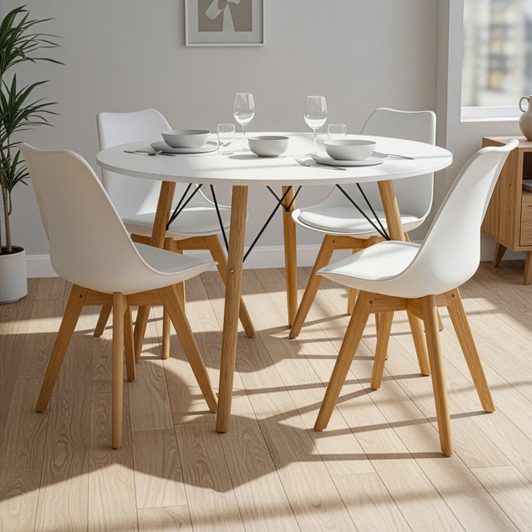 MESA REDONDA EIFFEL 120 CM + 4 CADEIRAS LEDA