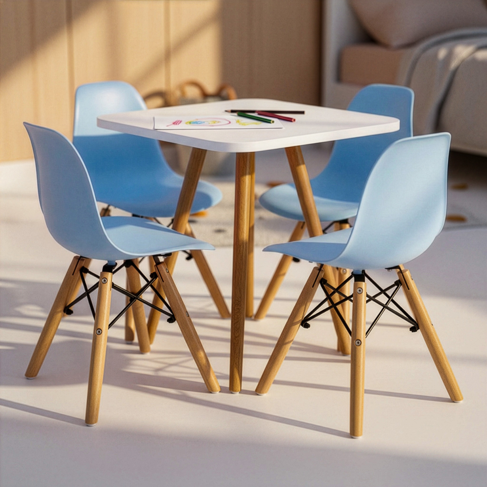 KIT MESA CHARLES EAMES EIFFEL INFANTIL COM QUATRO CADEIRAS EIFFEL PÉS DE MADEIRA!