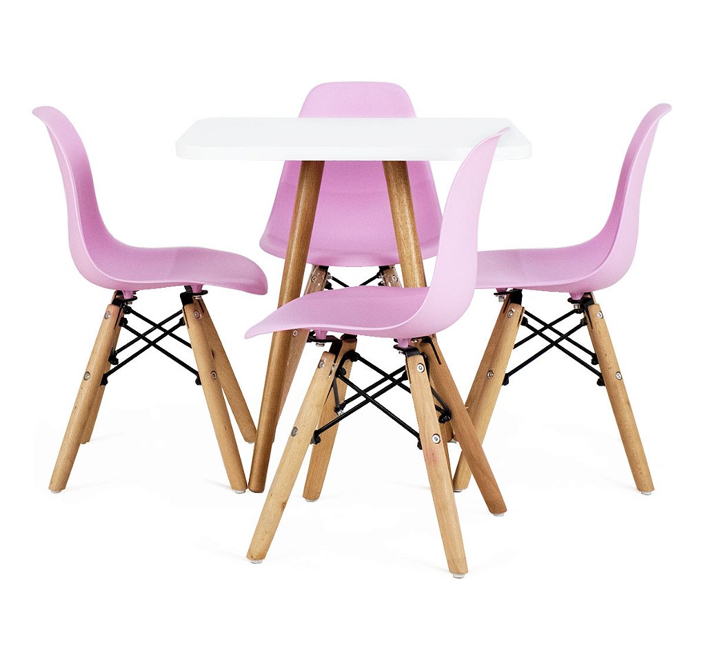 Mesa Infantil Branca 50cm Quadrada + 4 Cadeiras Eiffel Rosa