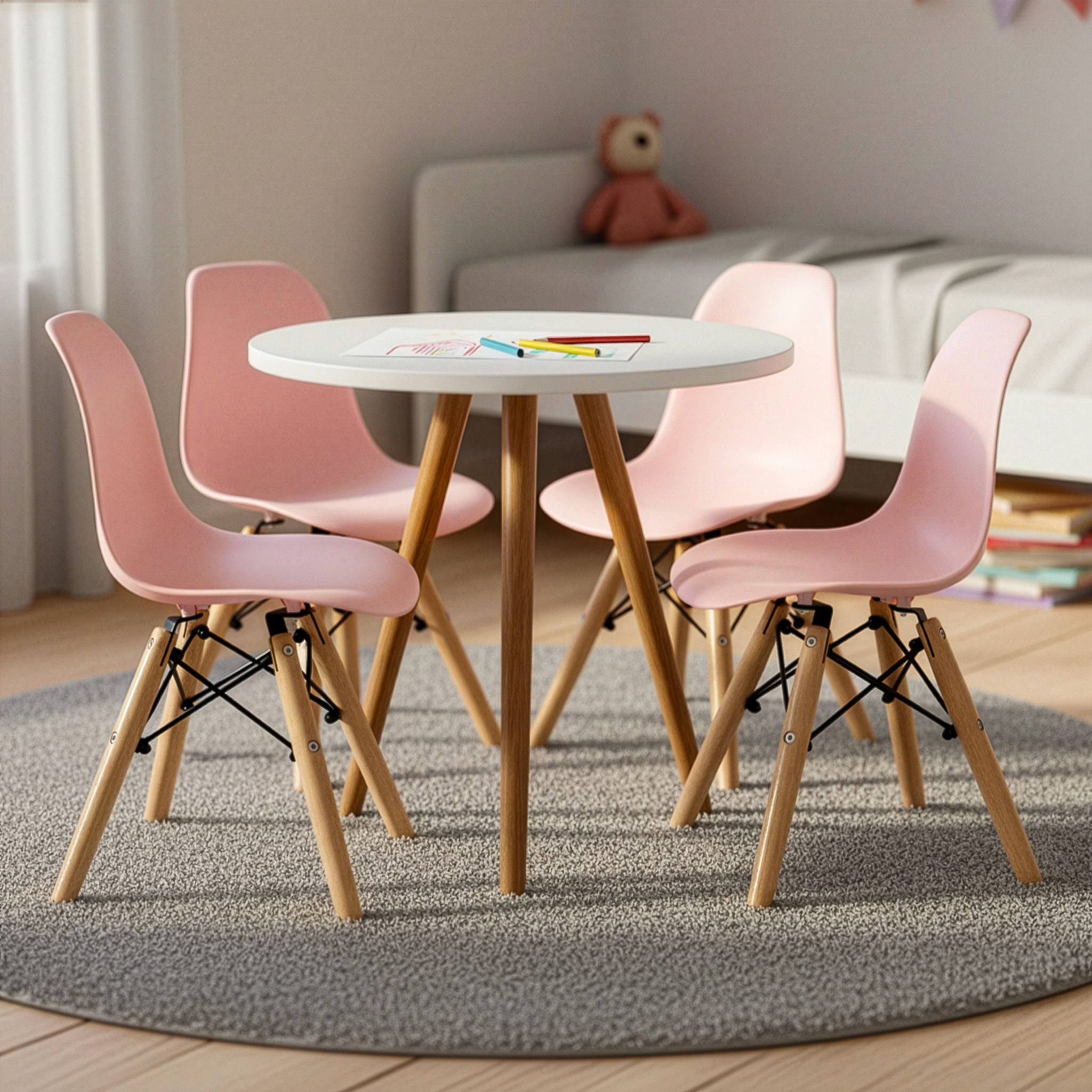 KIT MESA CHARLES EAMES EIFFEL INFANTIL COM QUATRO CADEIRAS EIFFEL PÉS DE MADEIRA