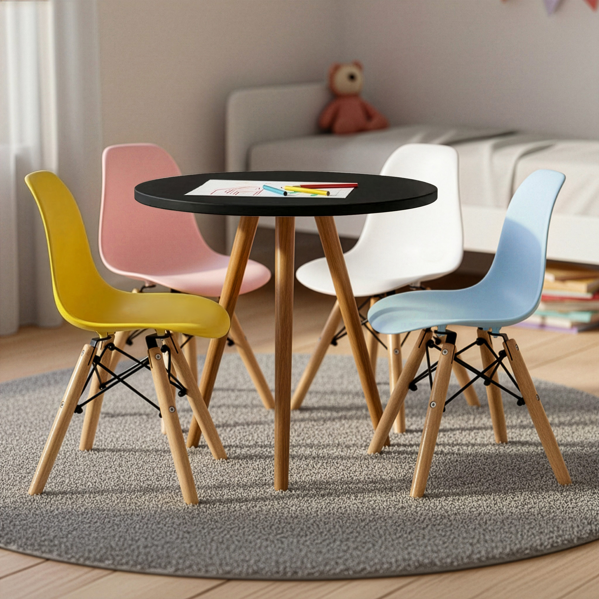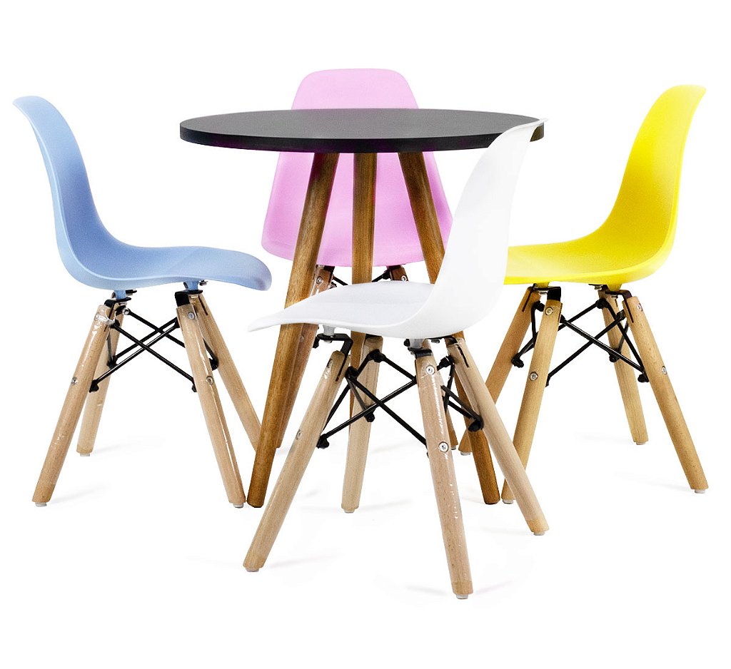 Mesa Infantil Preta 50cm Tripé + 4 Cadeiras Eiffel Colorido