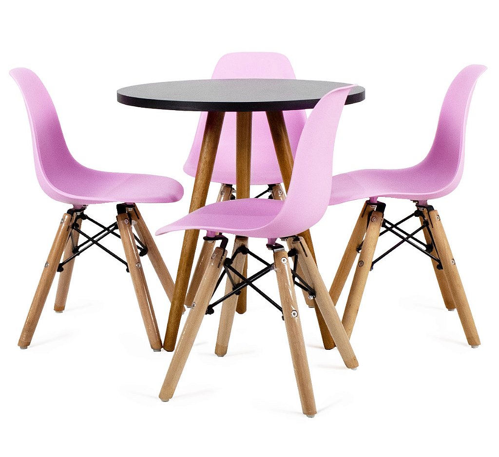 Mesa Infantil Preta 50cm Tripé + 4 Cadeiras Eiffel Rosa