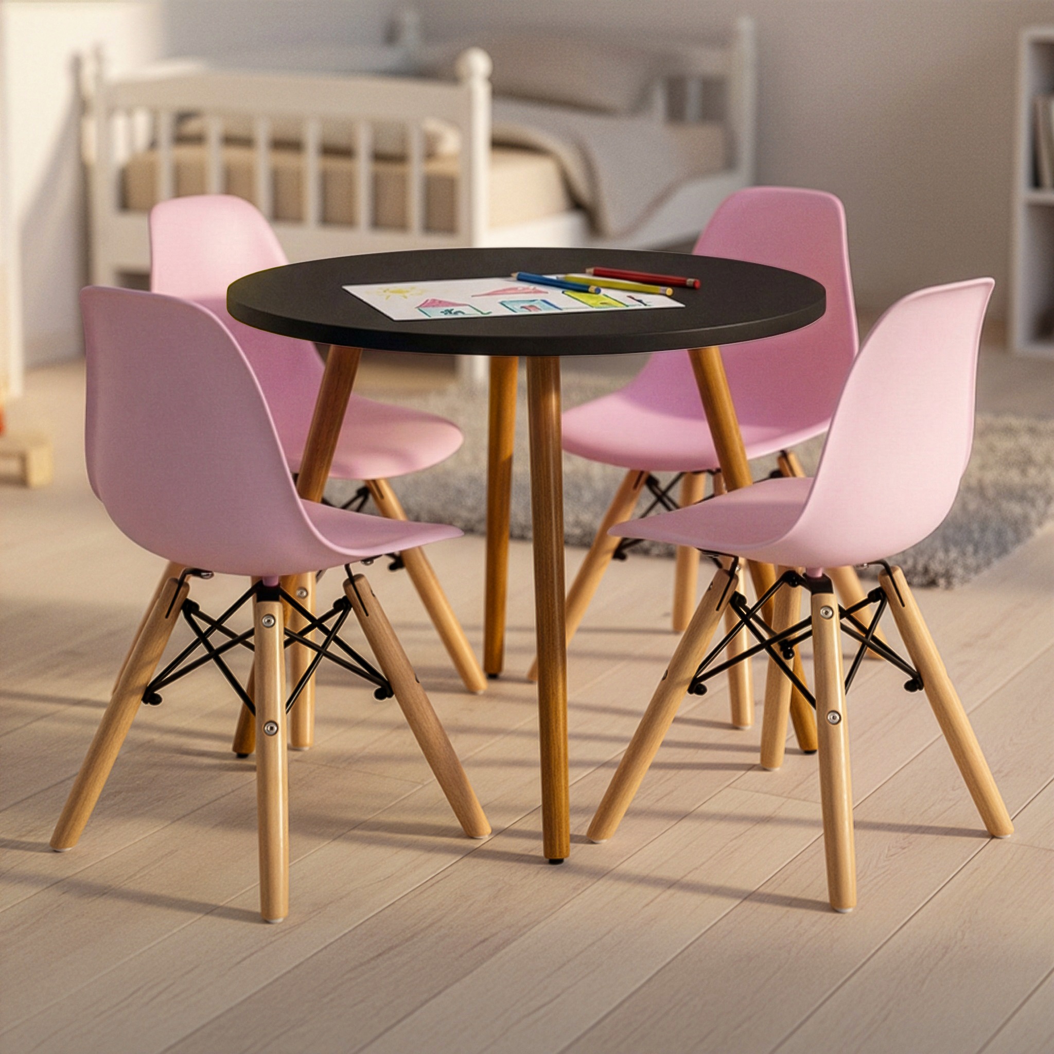 Mesa Infantil Preta 60cm + 4 Cadeiras Eiffel Rosa