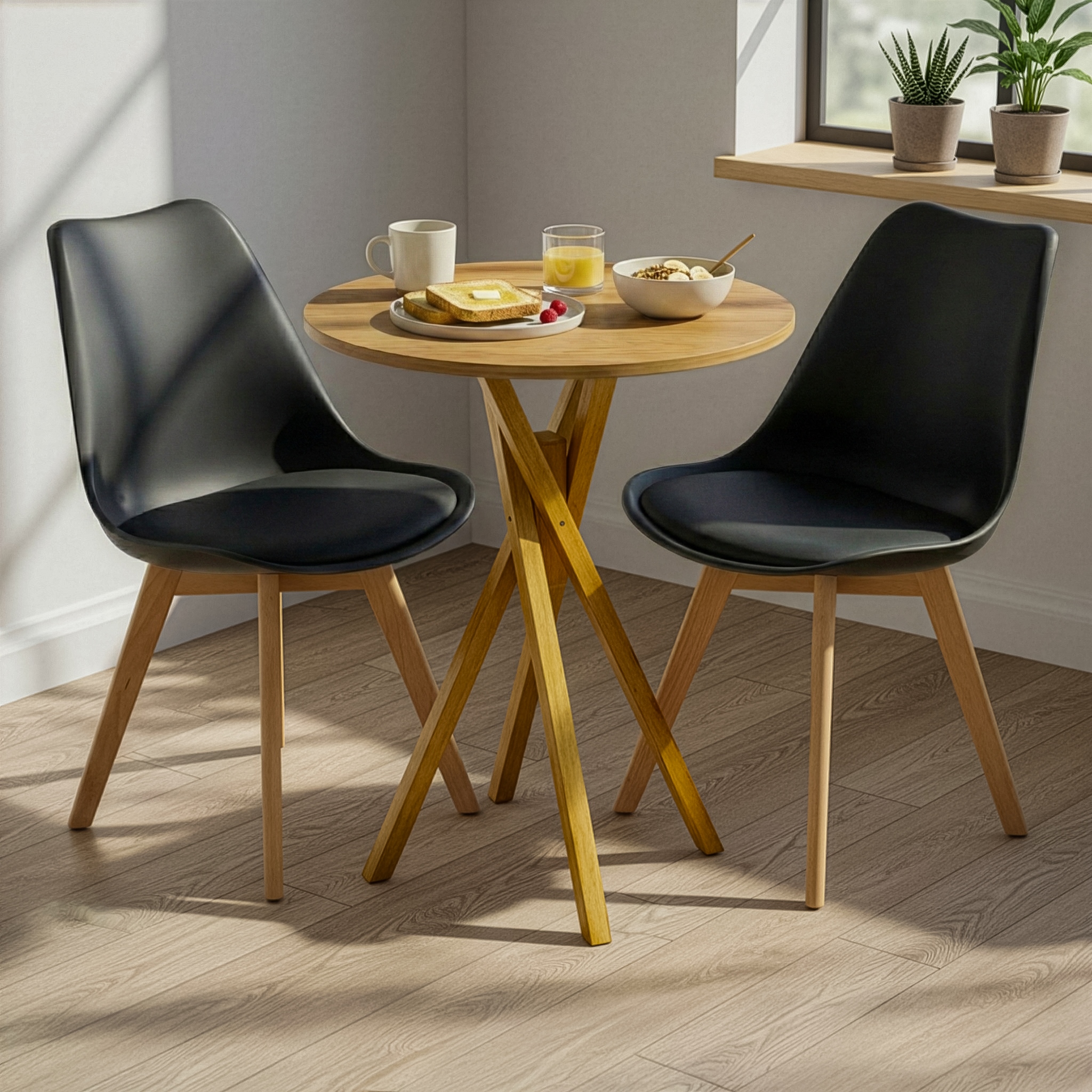 Mesa Redonda Bistrô 60cm Louro Freijó com 2 Cadeiras Siena Preta