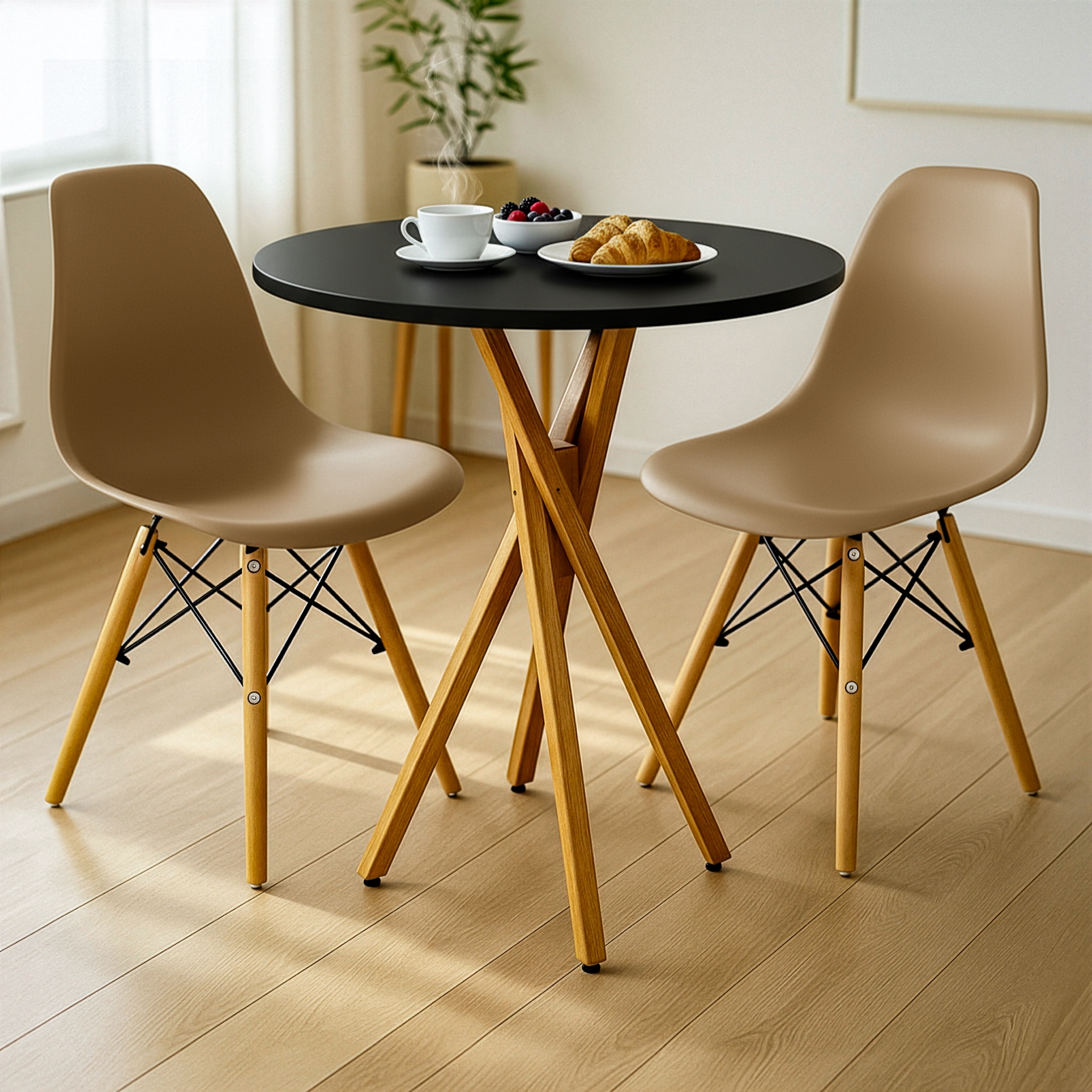 MESA REDONDA PÉS TRANÇADOS 60 CM + 2 CADEIRAS EIFFEL