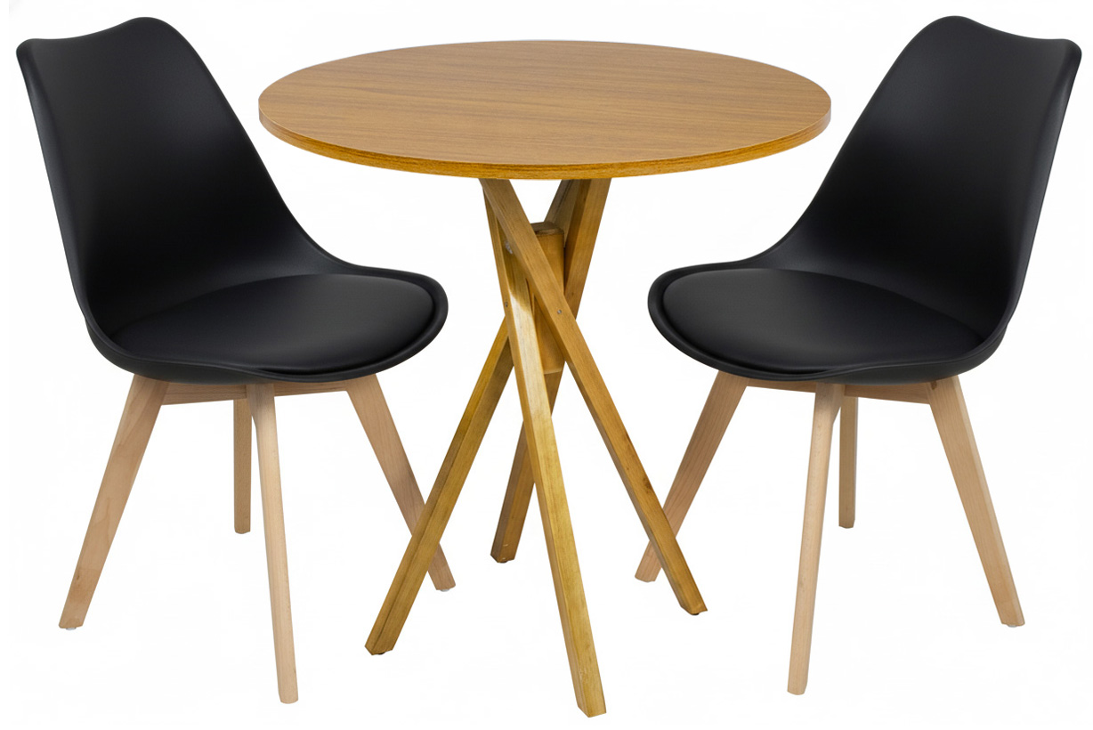 Mesa Redonda Bistrô 80cm Louro Freijó com 2 Cadeiras Siena Preta