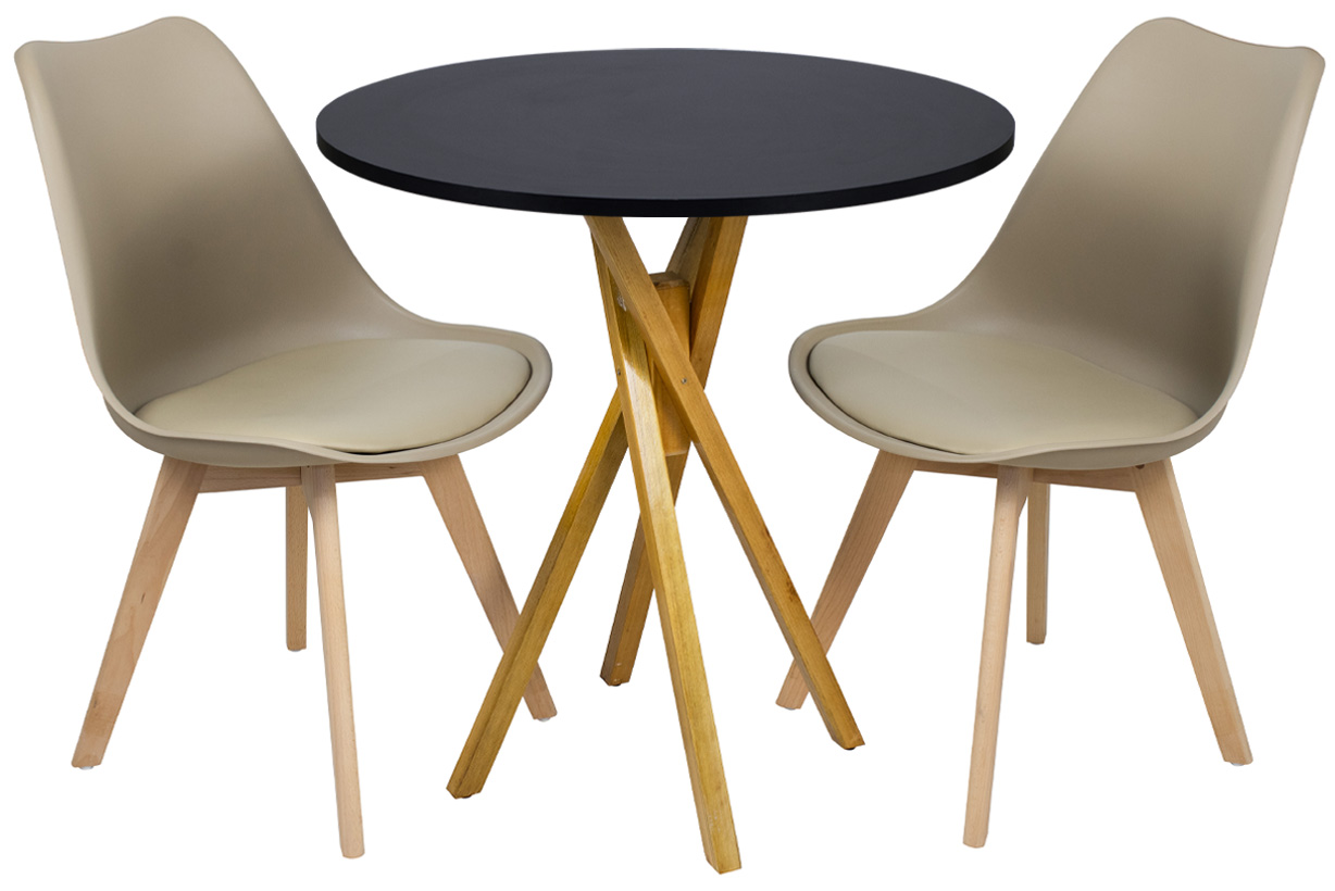 Mesa Redonda Bistrô 80cm Preta com 2 Cadeiras Siena Nude