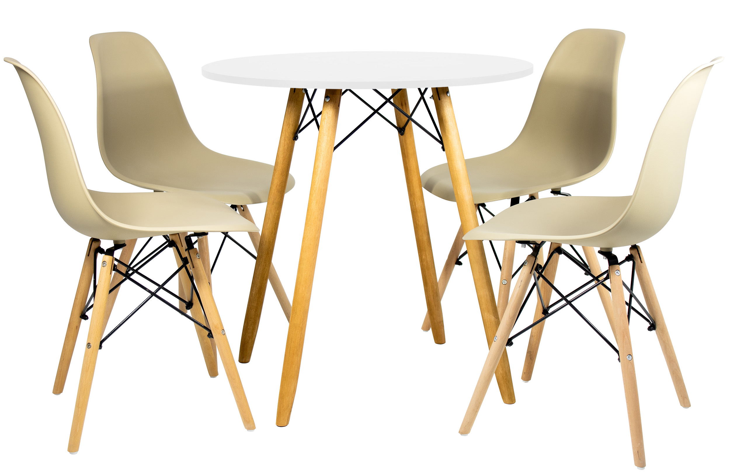 Mesa Redonda Eiffel 80cm Branca com 4 Cadeiras Eiffel Nude