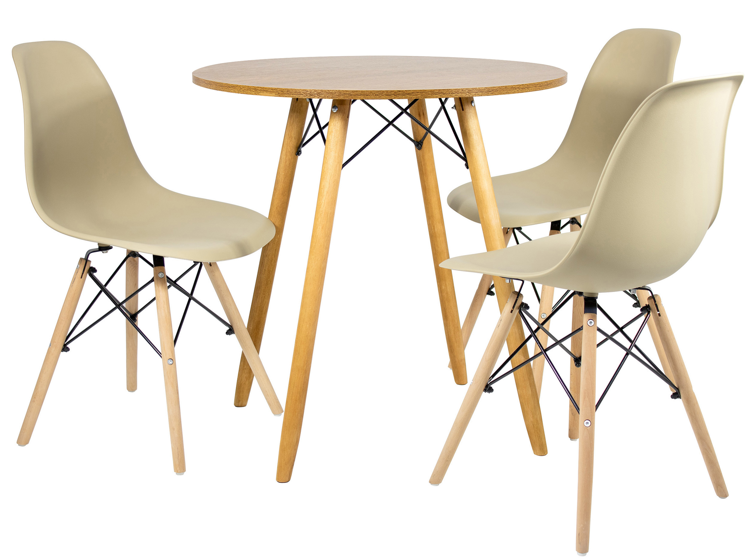 Mesa Redonda Eiffel 80cm Louro Freijó com 3 Cadeiras Eiffel Nude