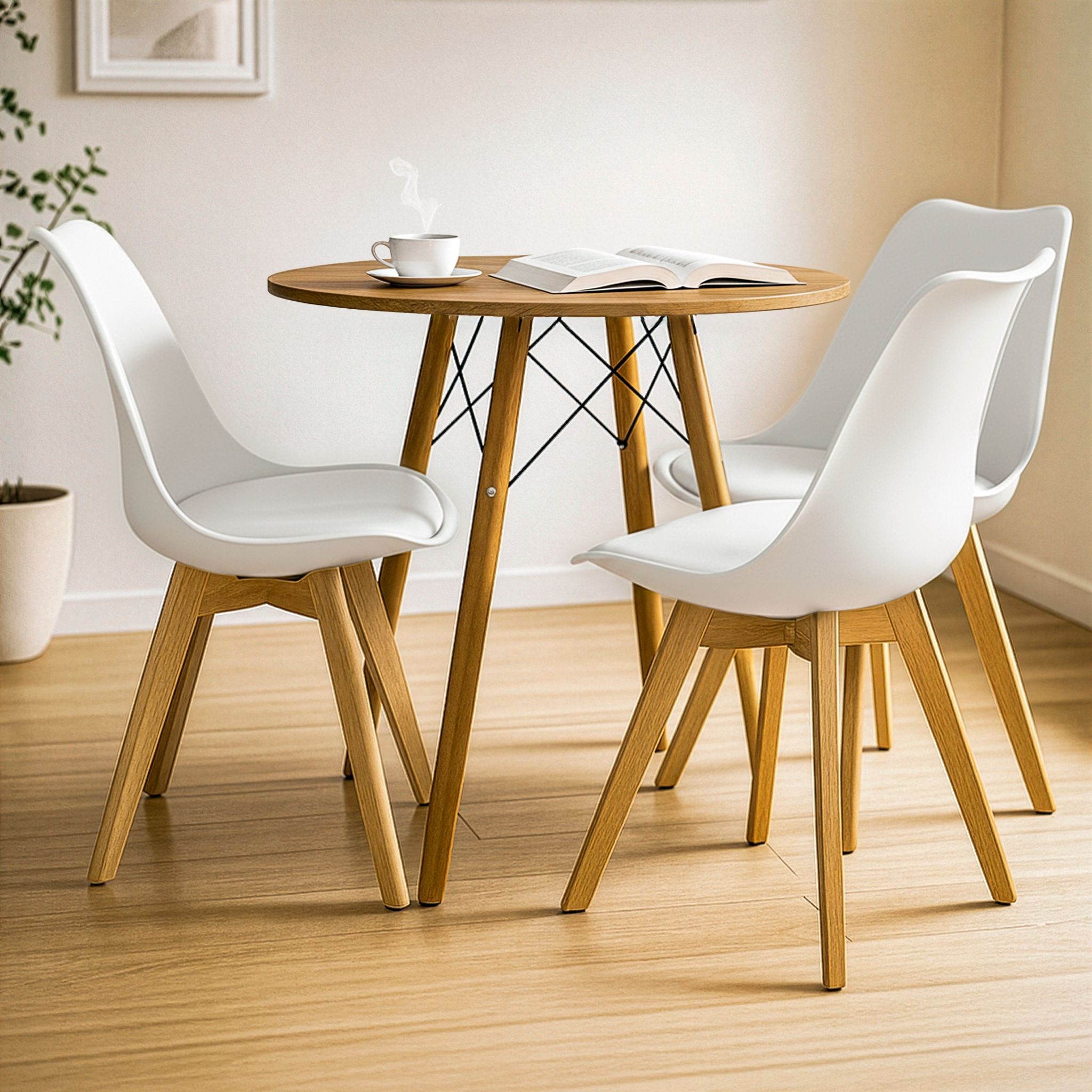 MESA REDONDA EIFFEL 80 CM + 3 CADEIRAS LEDA