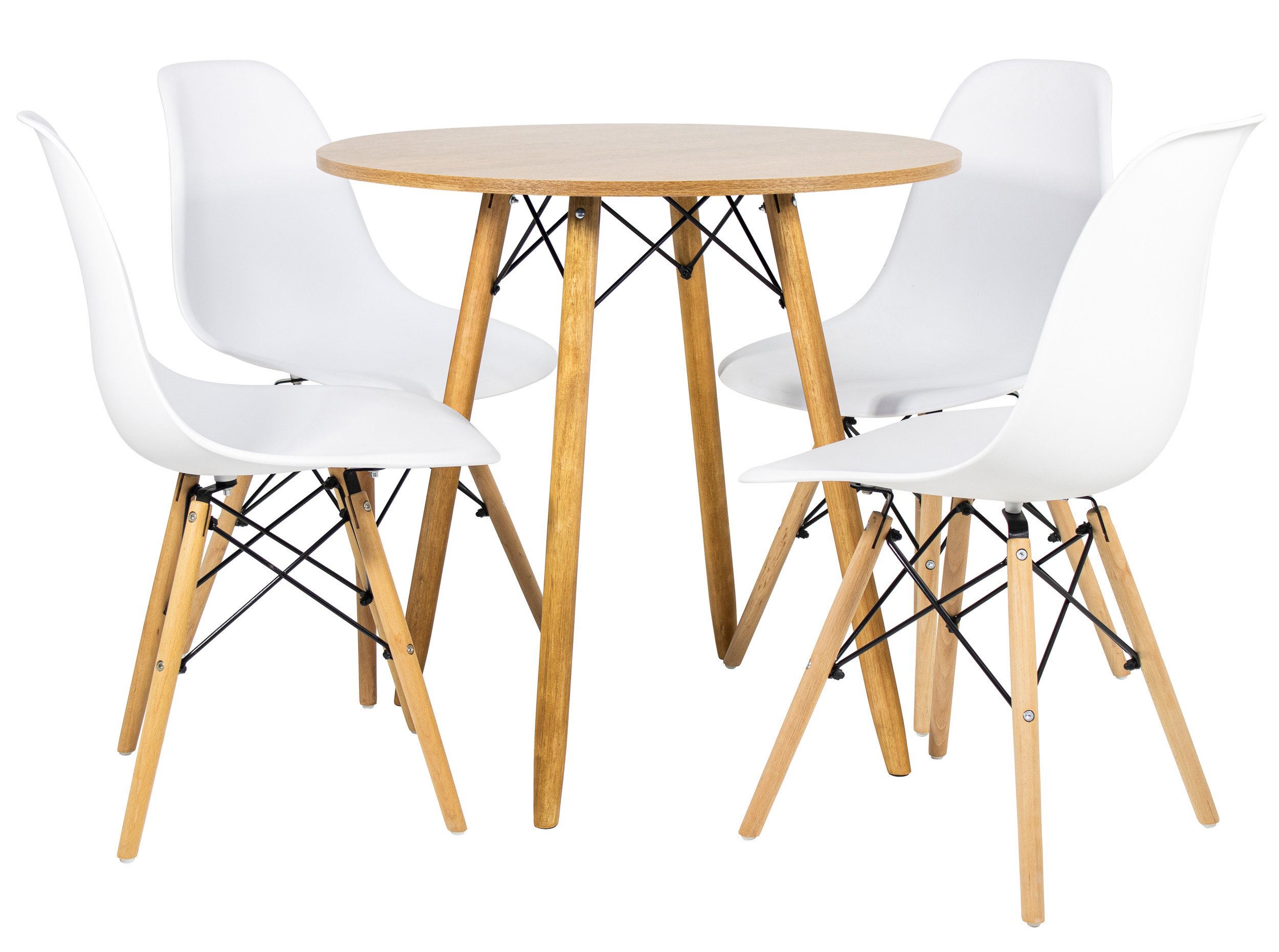Mesa Redonda Eiffel 80cm Louro Freijó com 4 Cadeiras Eiffel Branca