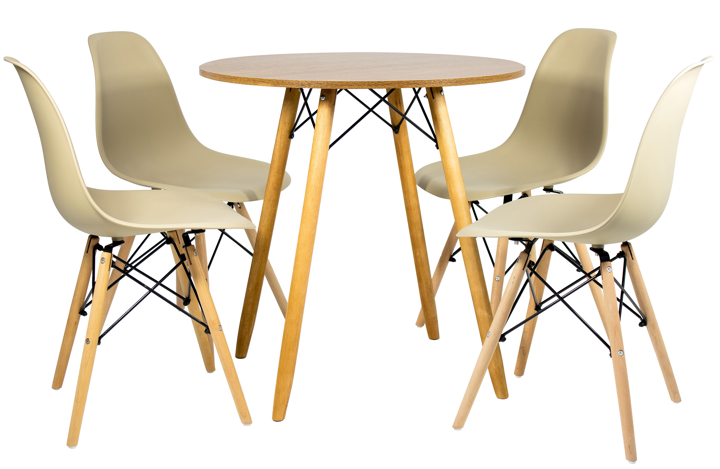 Mesa Redonda Eiffel 80cm Louro Freijó com 4 Cadeiras Eiffel Nude