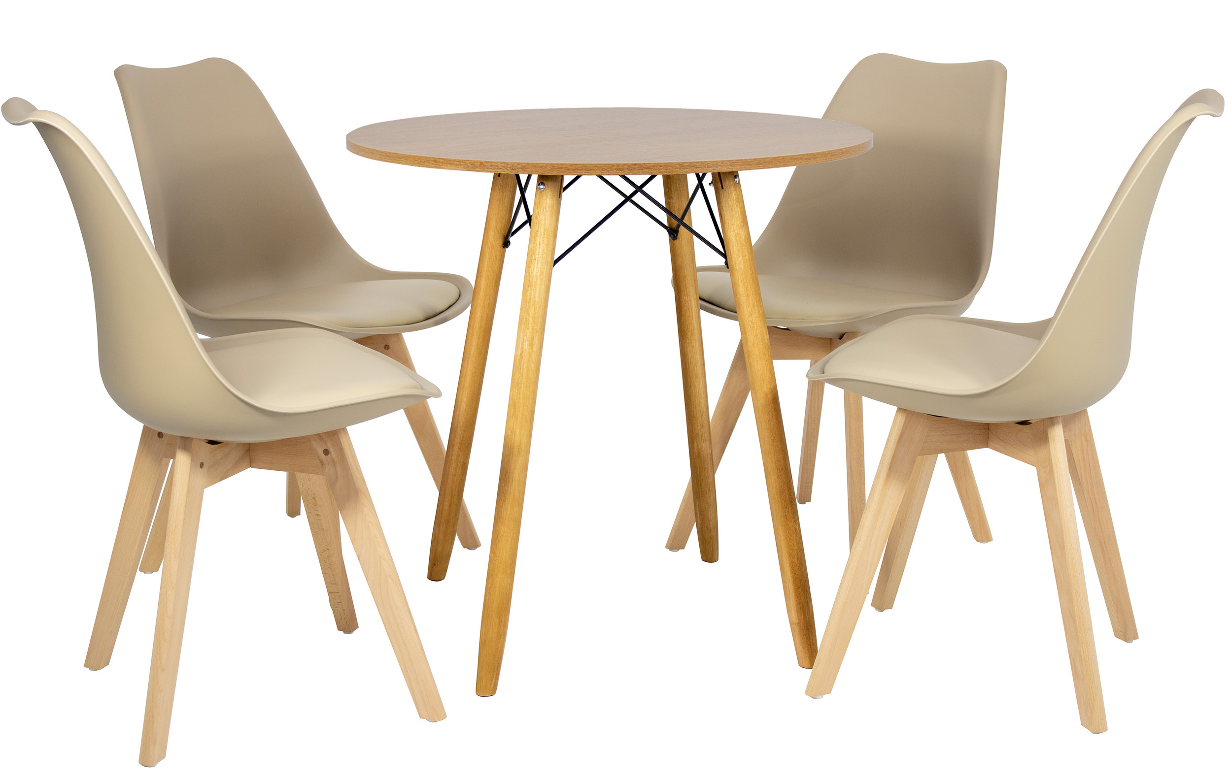 Mesa Redonda Eiffel 80cm Louro Freijó com 4 Cadeiras Siena Nude