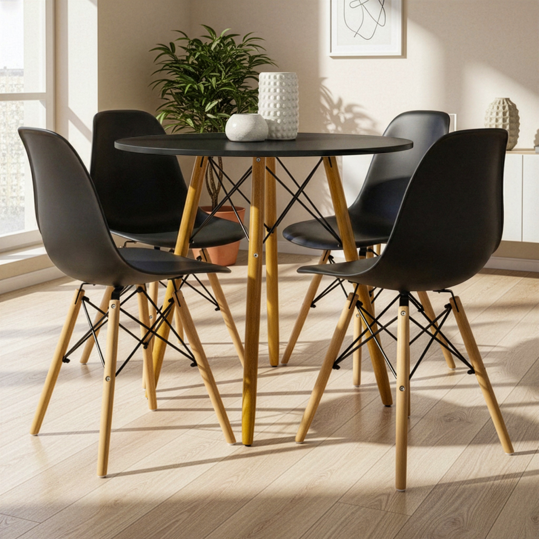 Mesa Redonda Eiffel 80cm Preta com 4 Cadeiras Eiffel Preta