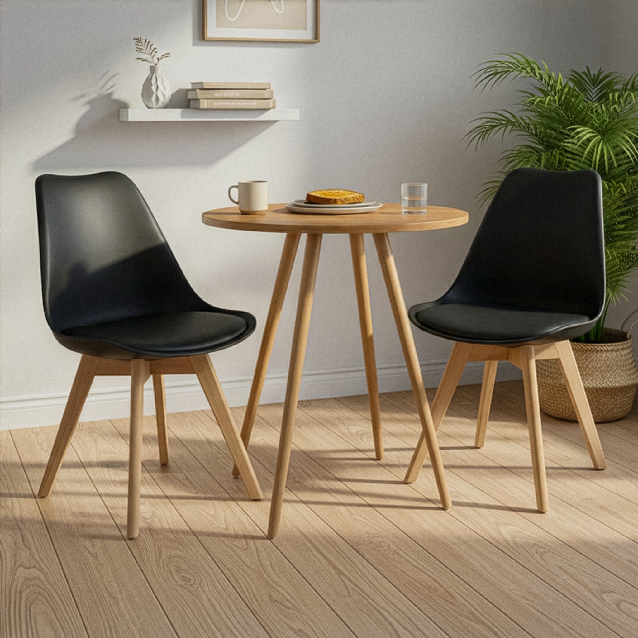 Mesa Redonda Sofia 60cm Louro Freijó com 2 Cadeiras Siena Preta