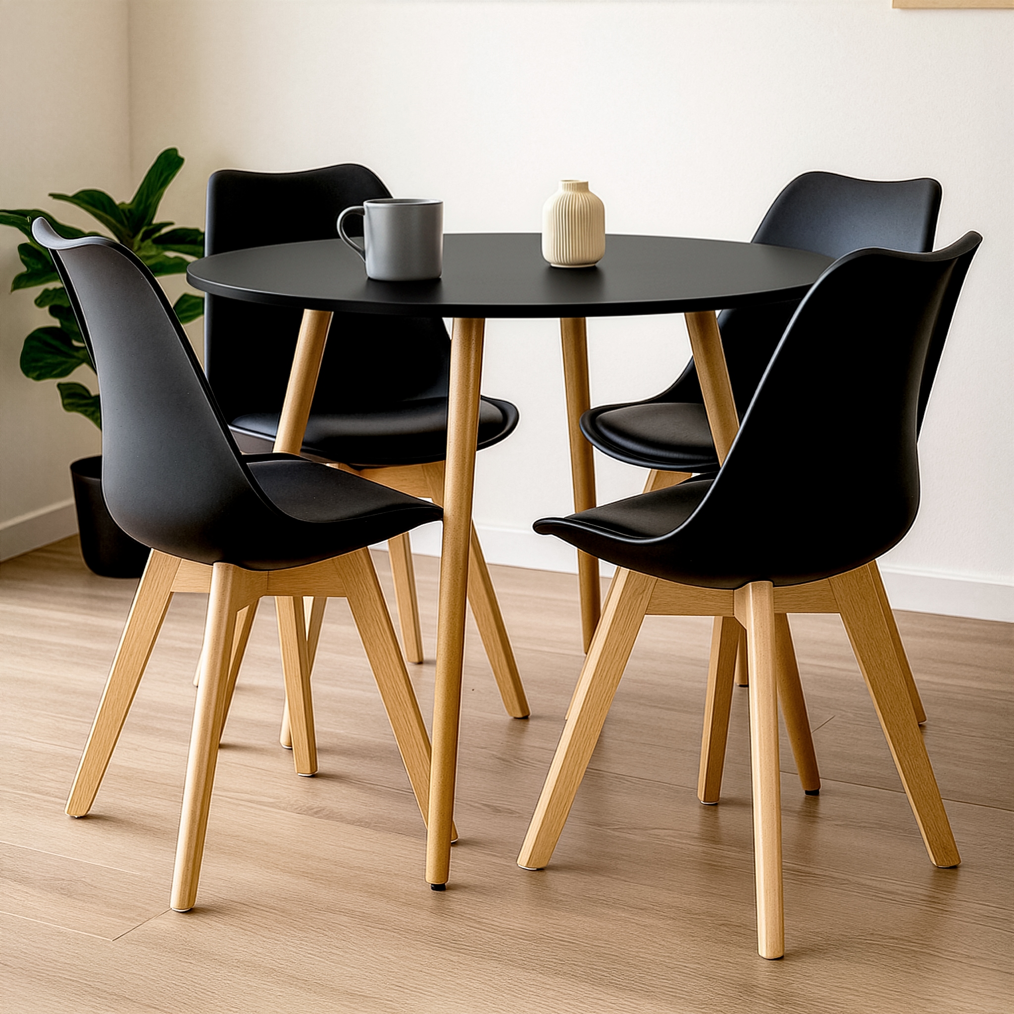 Mesa Redonda Sofia 80cm Preta com 4 Cadeiras Siena Preta