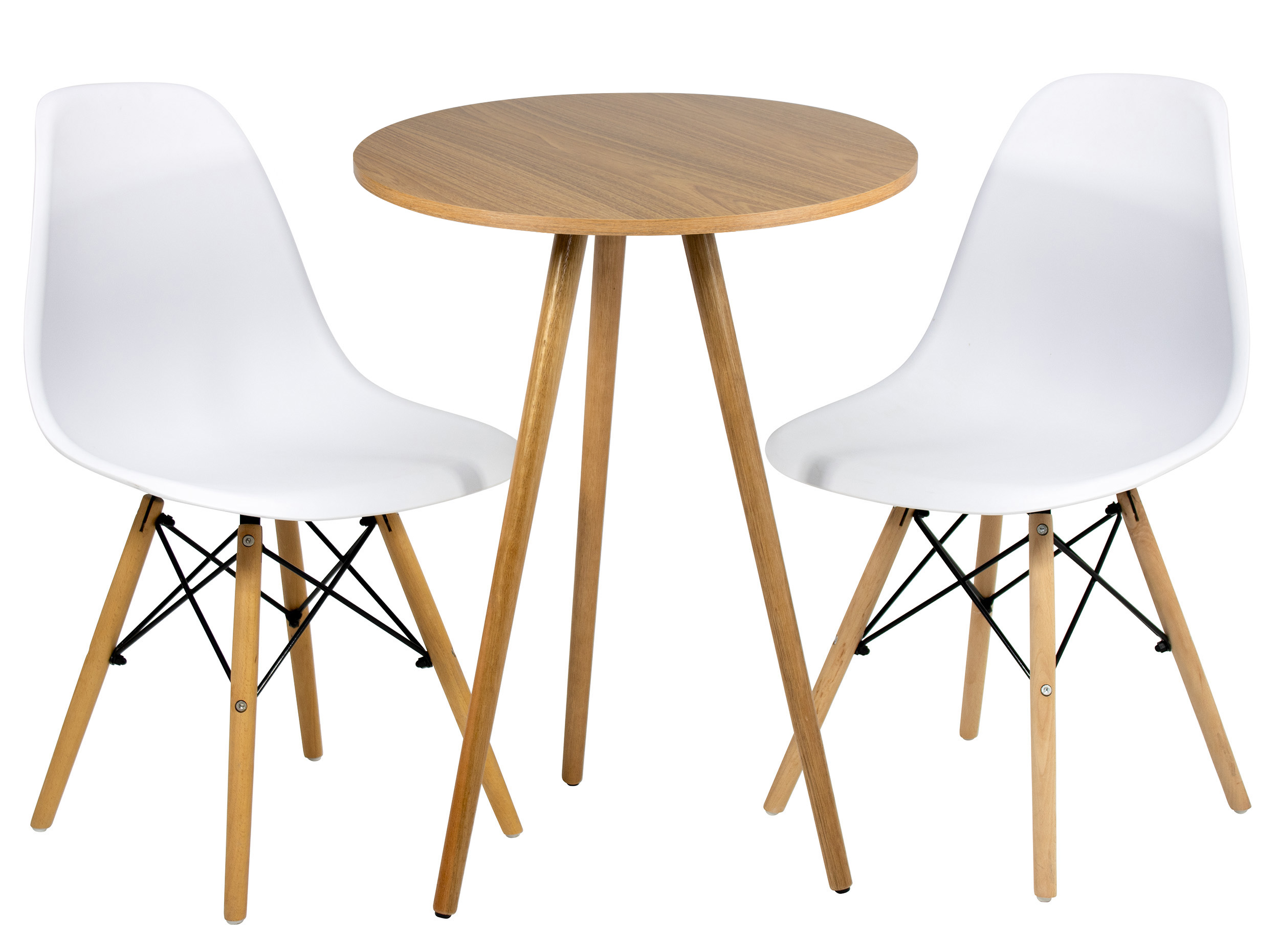 Mesa Redonda Tripé 60cm Louro Freijó com 2 Cadeiras Eiffel Branca