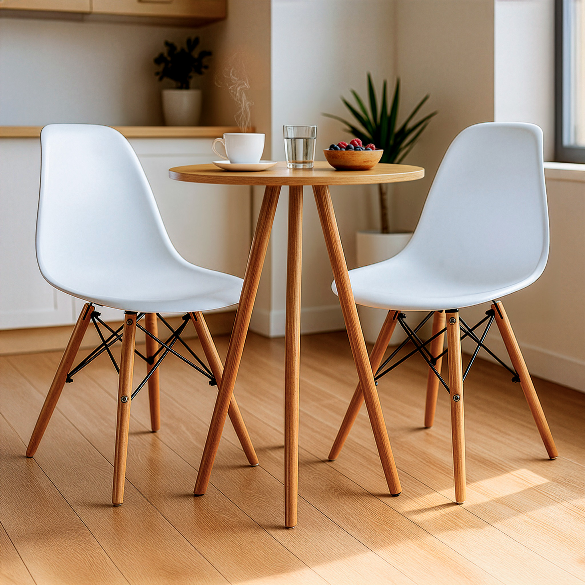 O conjunto Mesa Redonda Tripé com Cadeiras Charles Eames une design moderno e praticidade. Ideal para ambientes compactos, trazendo charme e funcionalidade ao ambiente.