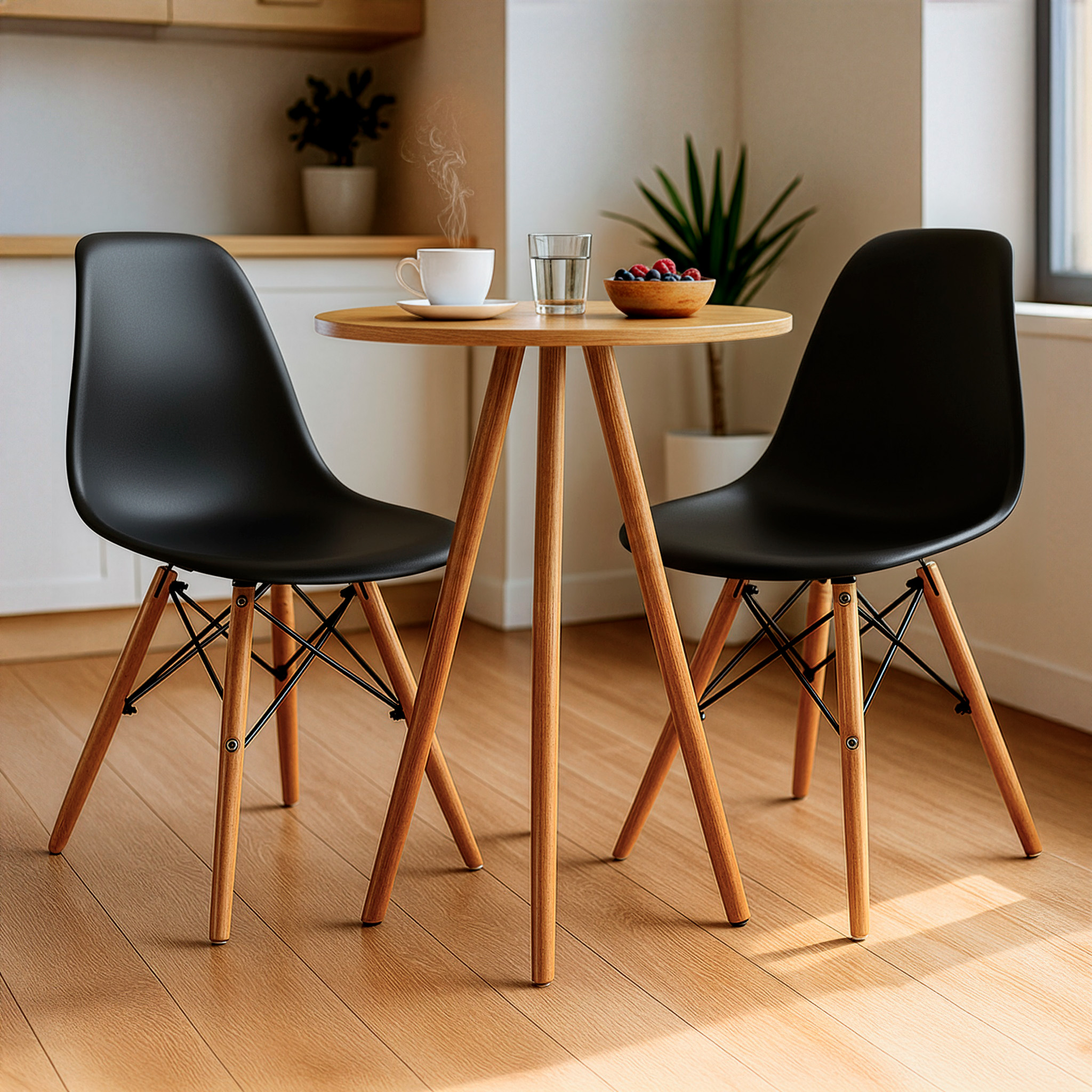 O conjunto Mesa Redonda Tripé com Cadeiras Charles Eames une design moderno e praticidade. Ideal para ambientes compactos, trazendo charme e funcionalidade ao ambiente.