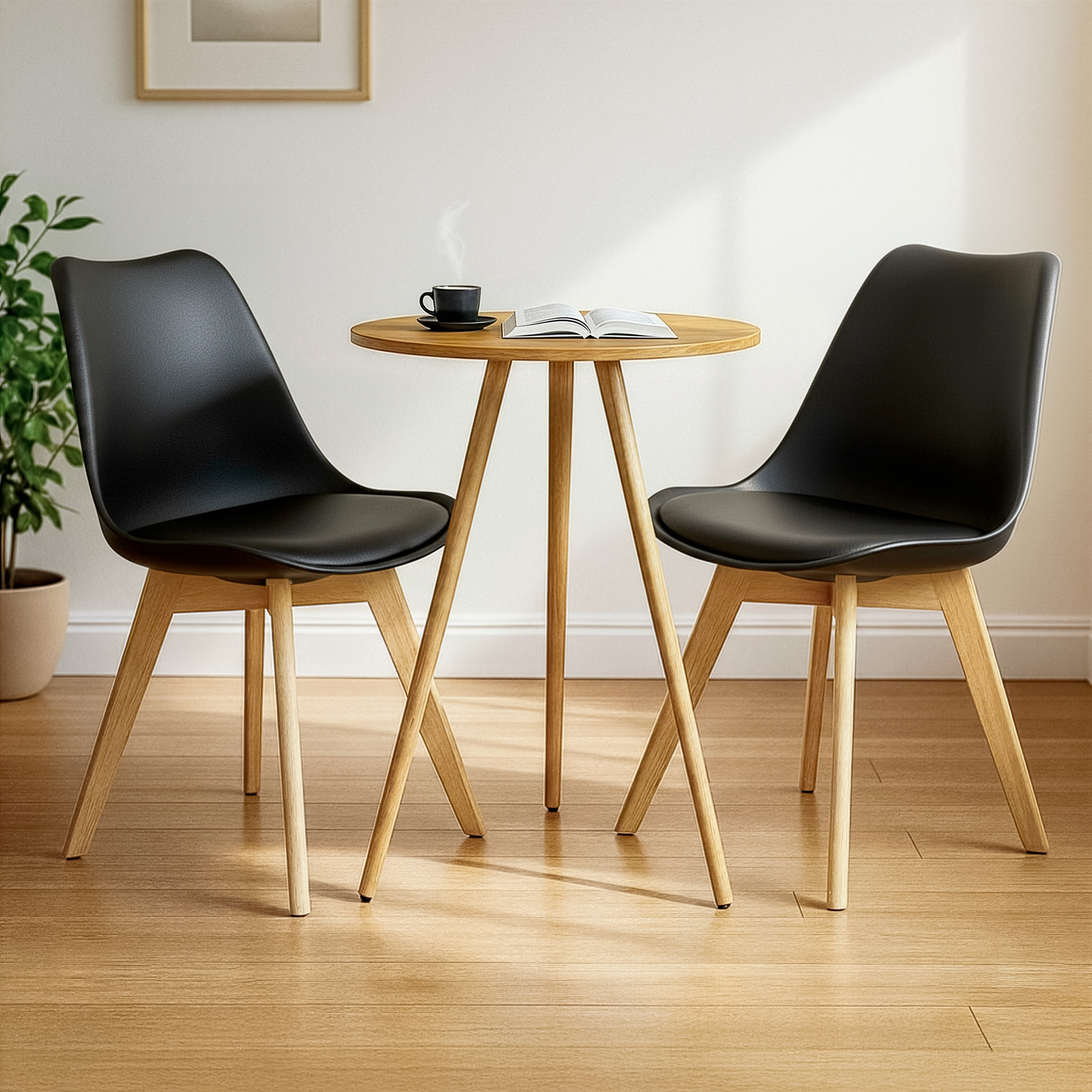 Mesa Redonda Tripé 60cm Louro Freijó com 2 Cadeiras Siena Preta
