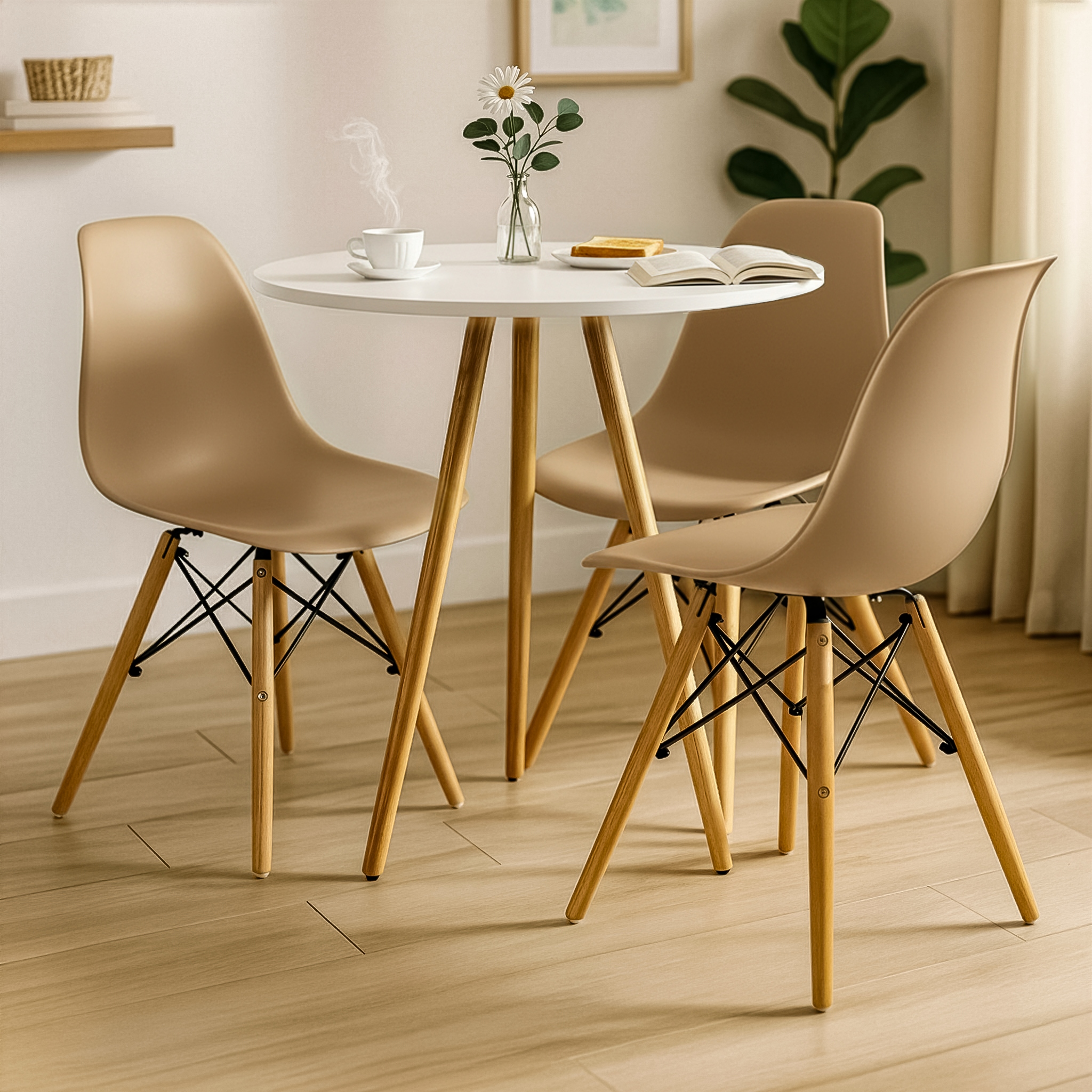 O conjunto Mesa Redonda Tripé com Cadeiras Charles Eames une design moderno e praticidade. Ideal para ambientes compactos, trazendo charme e funcionalidade ao ambiente.