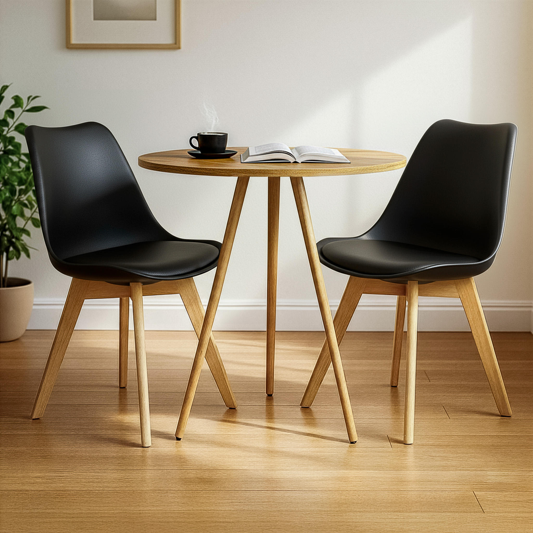 Mesa Redonda Tripé 70cm Louro Freijó com 2 Cadeiras Siena Preta