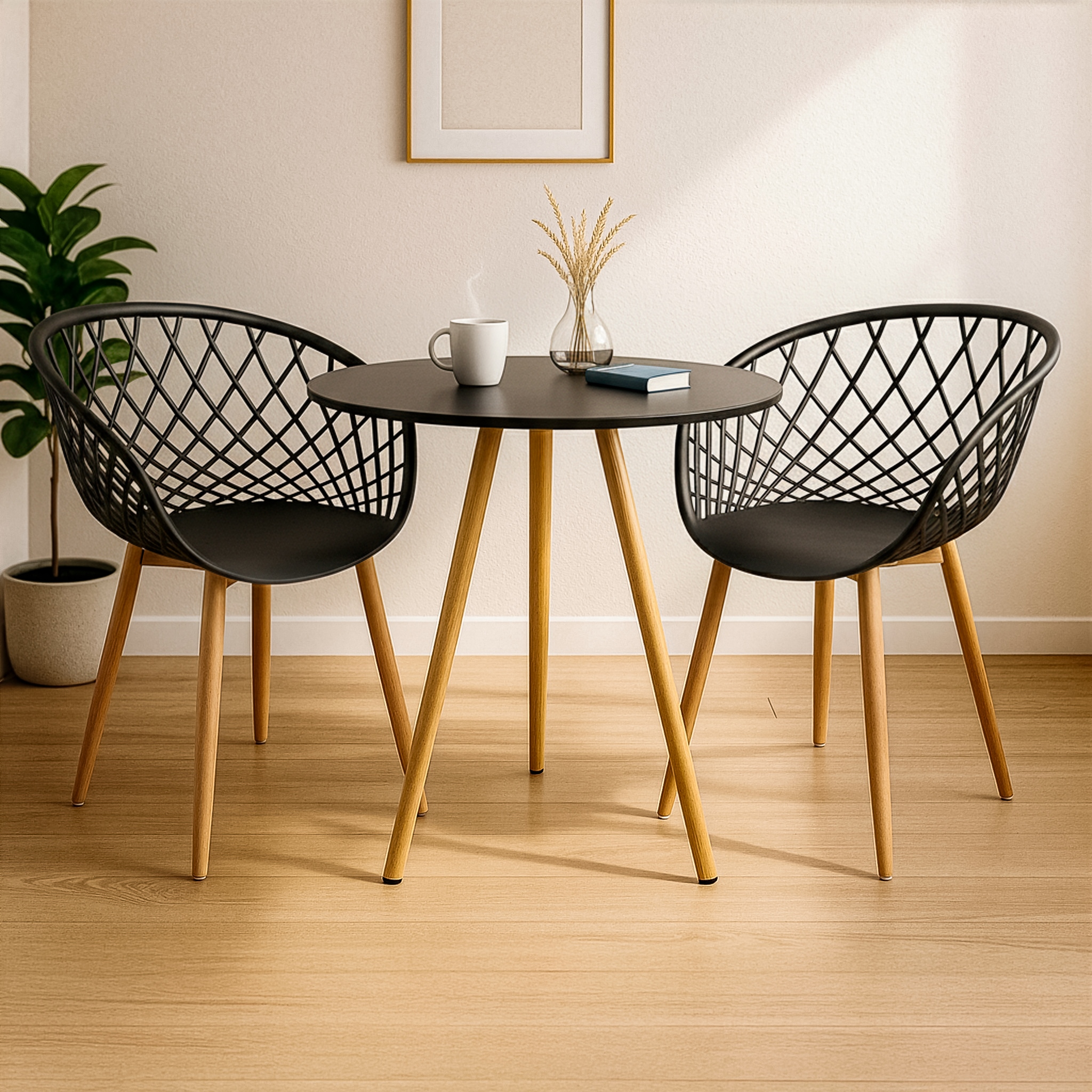 CONJUNTO DE MESA DE JANTAR REDONDA TRIPÉ PREMIUM 70CM COM 2 CADEIRAS CLARICE COR PRETO