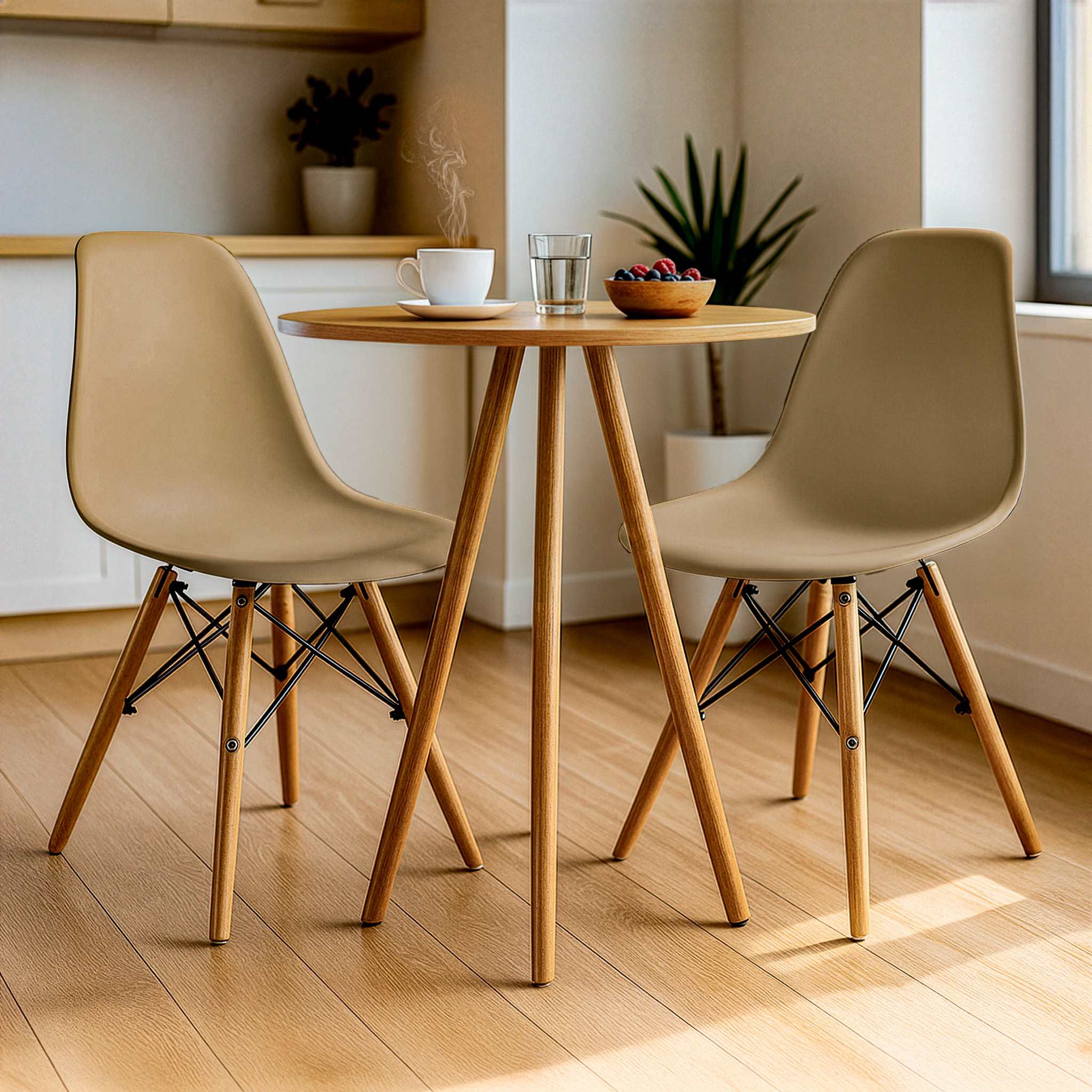 O conjunto Mesa Redonda Tripé com Cadeiras Charles Eames une design moderno e praticidade. Ideal para ambientes compactos, trazendo charme e funcionalidade ao ambiente.