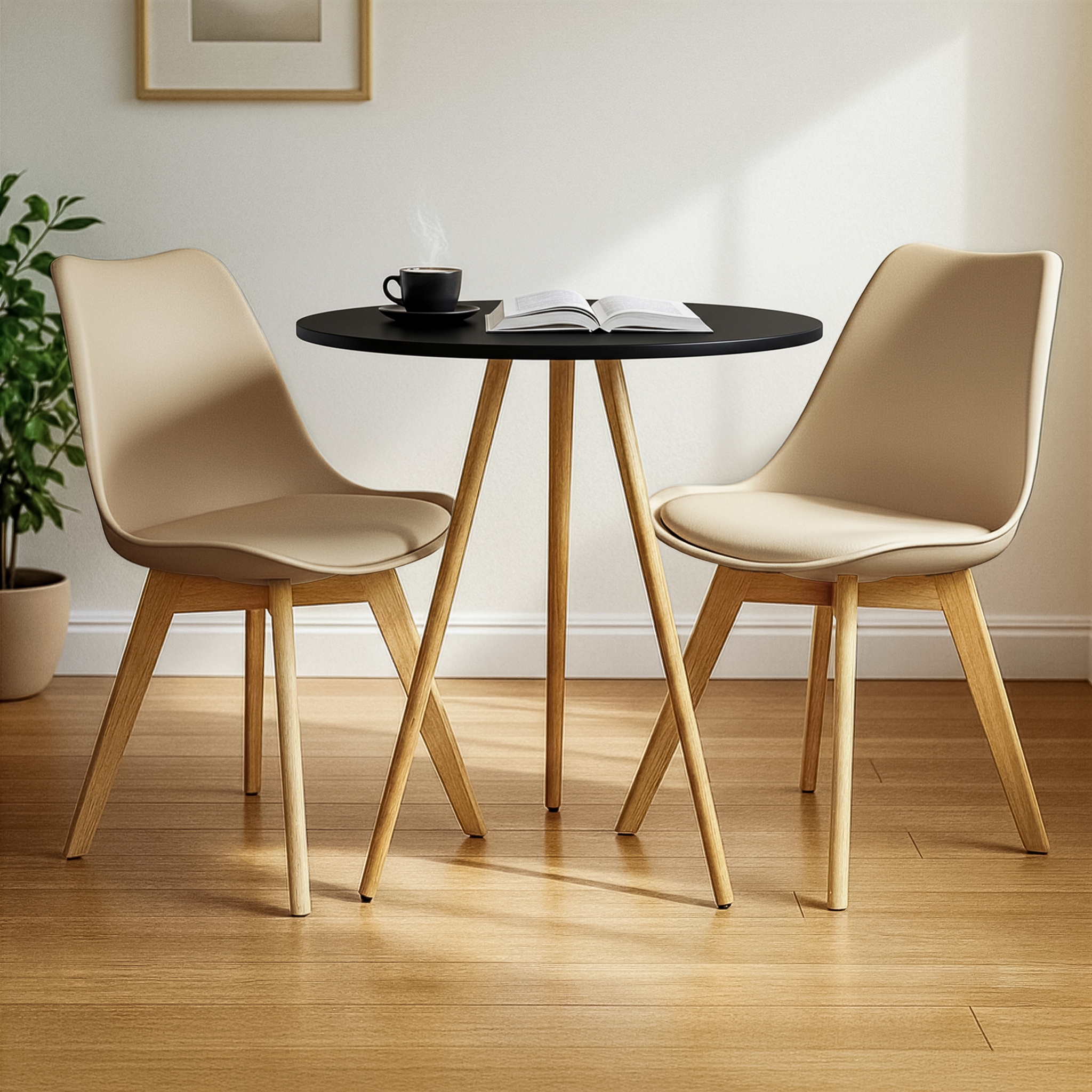 Mesa Redonda Tripé 80cm Preta com 2 Cadeiras Siena Nude