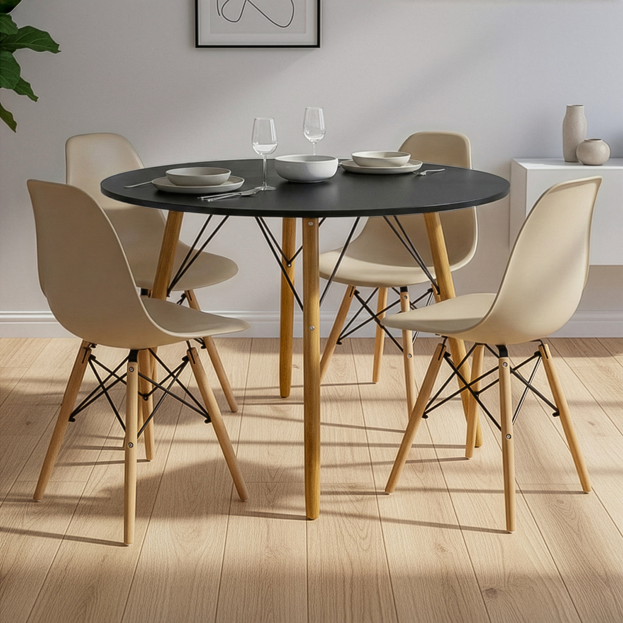 Mesa de Jantar Redonda Eiffel 100cm Preta com 4 Cadeiras Eames Nude